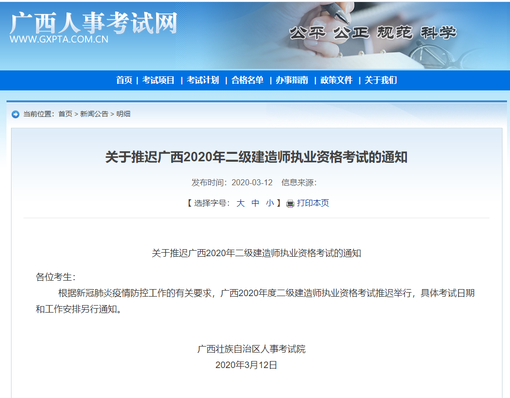 關于推遲廣西2020年二級建造師執(zhí)業(yè)資格考試的通知